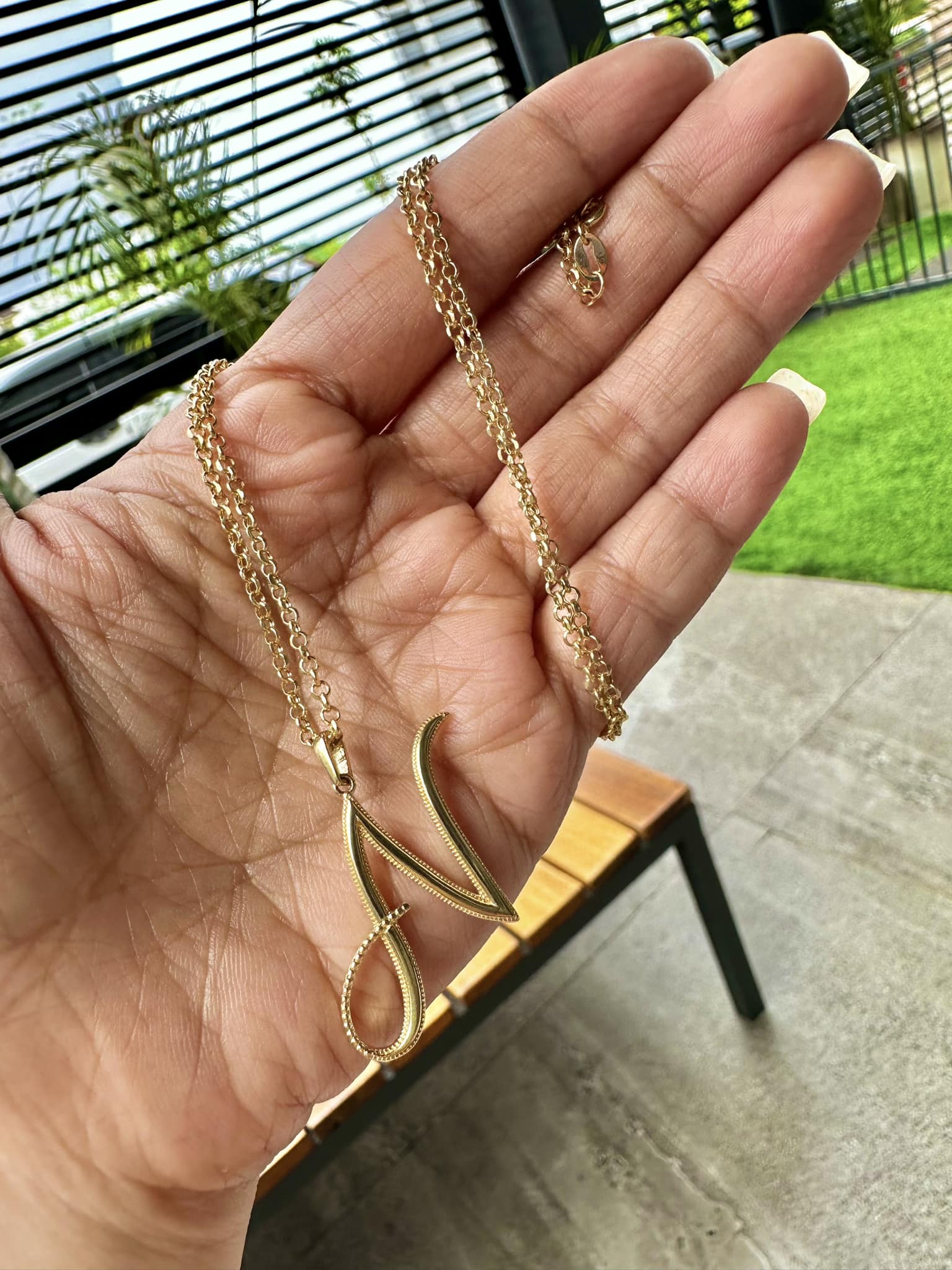 Feel effortlessly chic with this 18k Saudi Gold Necklace na saktong eye-catcher, lalo na with its elegant and unique "N" pendant!
