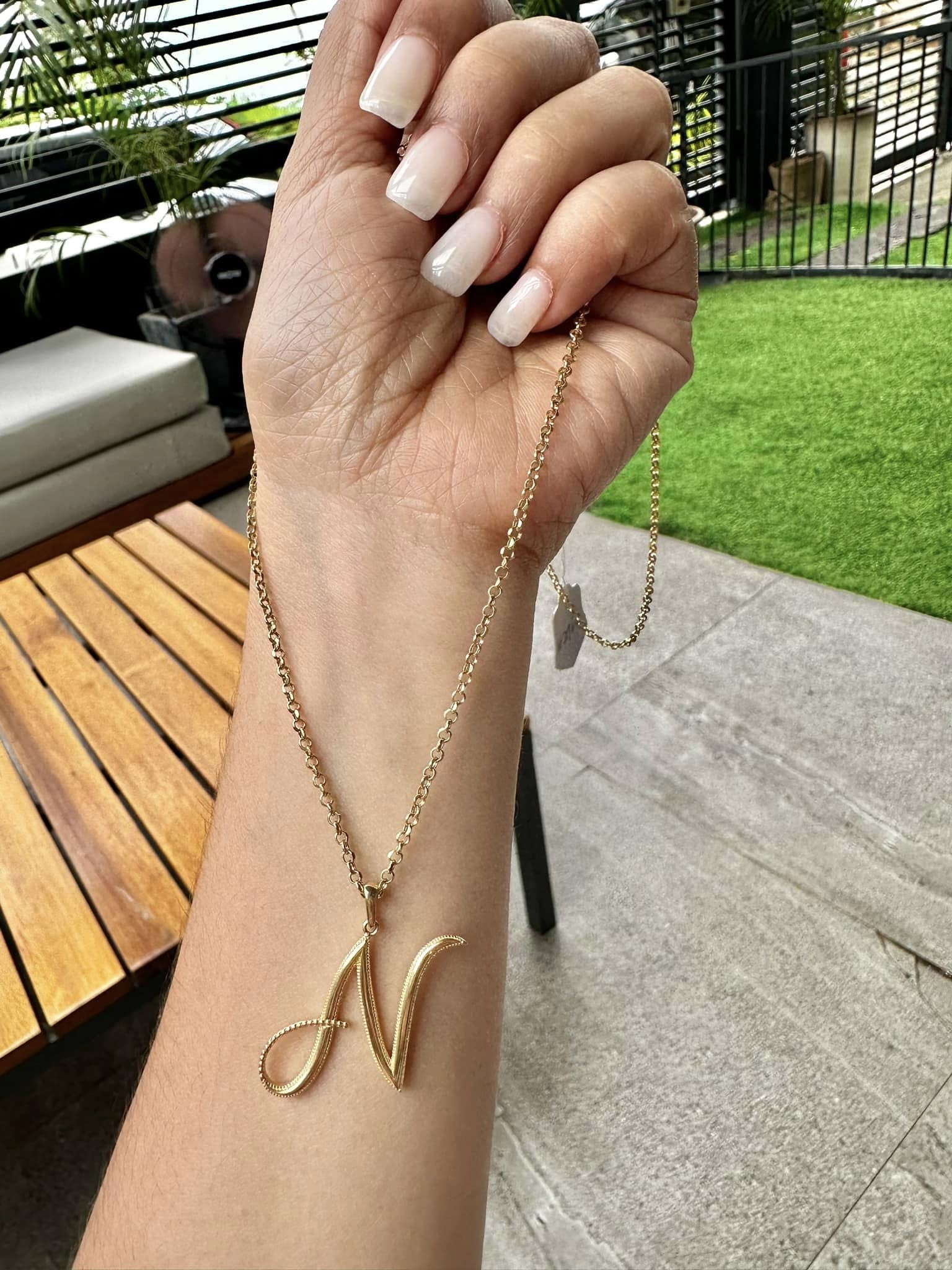 Ang chic, pang-statement piece talaga!- ✨ Sobrang elegant – This 18K Saudi gold pendant with an "N" design adds a personal touch to any look!