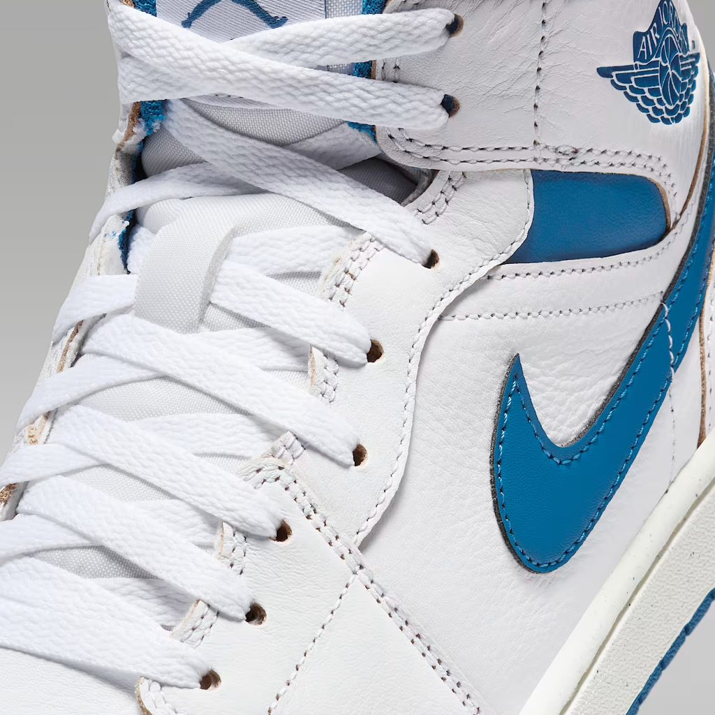 - Color: White base with blue overlays on the toe, Swoosh, and collar.