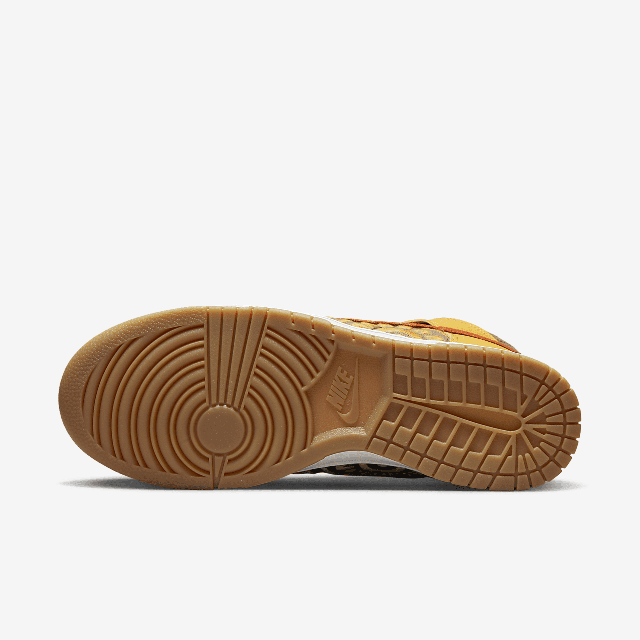 The Nike Dunk HI Orange/Yellow/Brown combines retro aesthetics with a vibrant, artistic design for everyday wear.